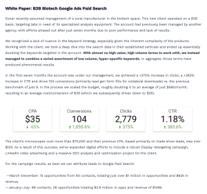 Our unique approach to SEM & PPC Advertising keeps Sonar accounts on an even keel and an upward trajectory.